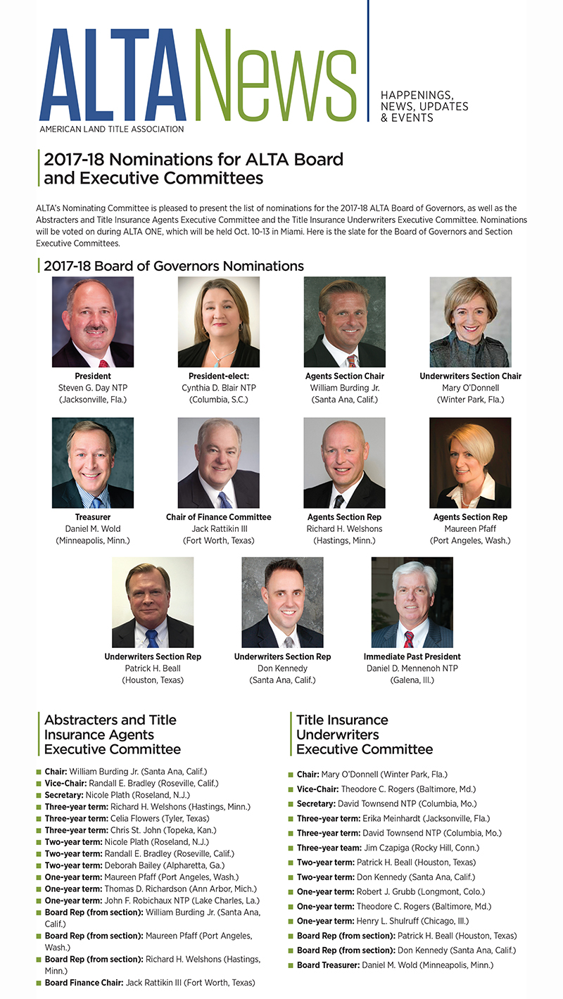 ALTA represents its members on a national and state level by working closely with members of Congress, state legislatures and regulators to advocate on behalf of the land title industry.