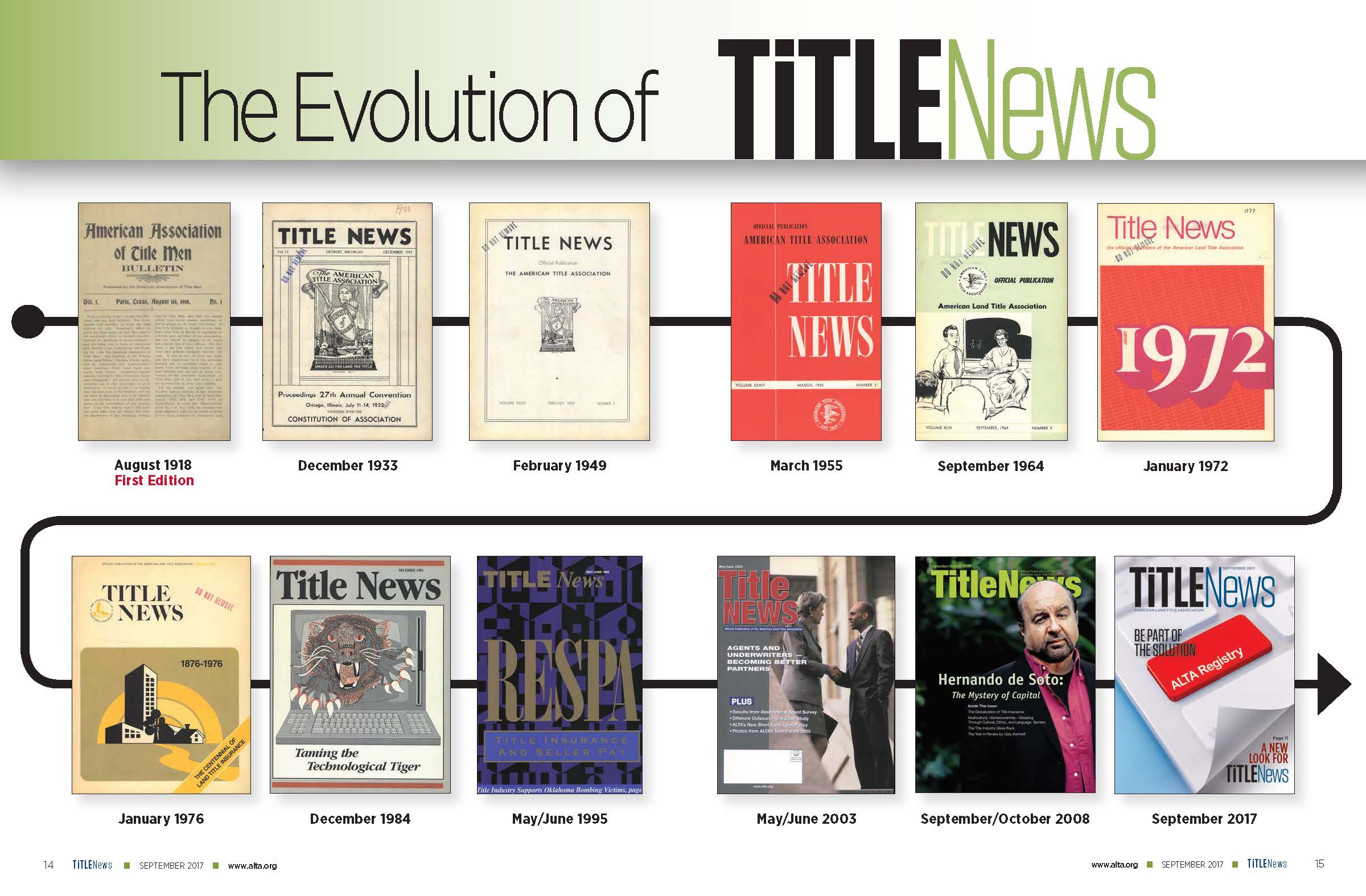 For nearly a century, TitleNews has been the go-to source of information about the land title insurance industry. Iterations have evolved from an extremely text-heavy publication since the first edition in 1918 to a magazine that attempts to meet the needs of today’s readers.