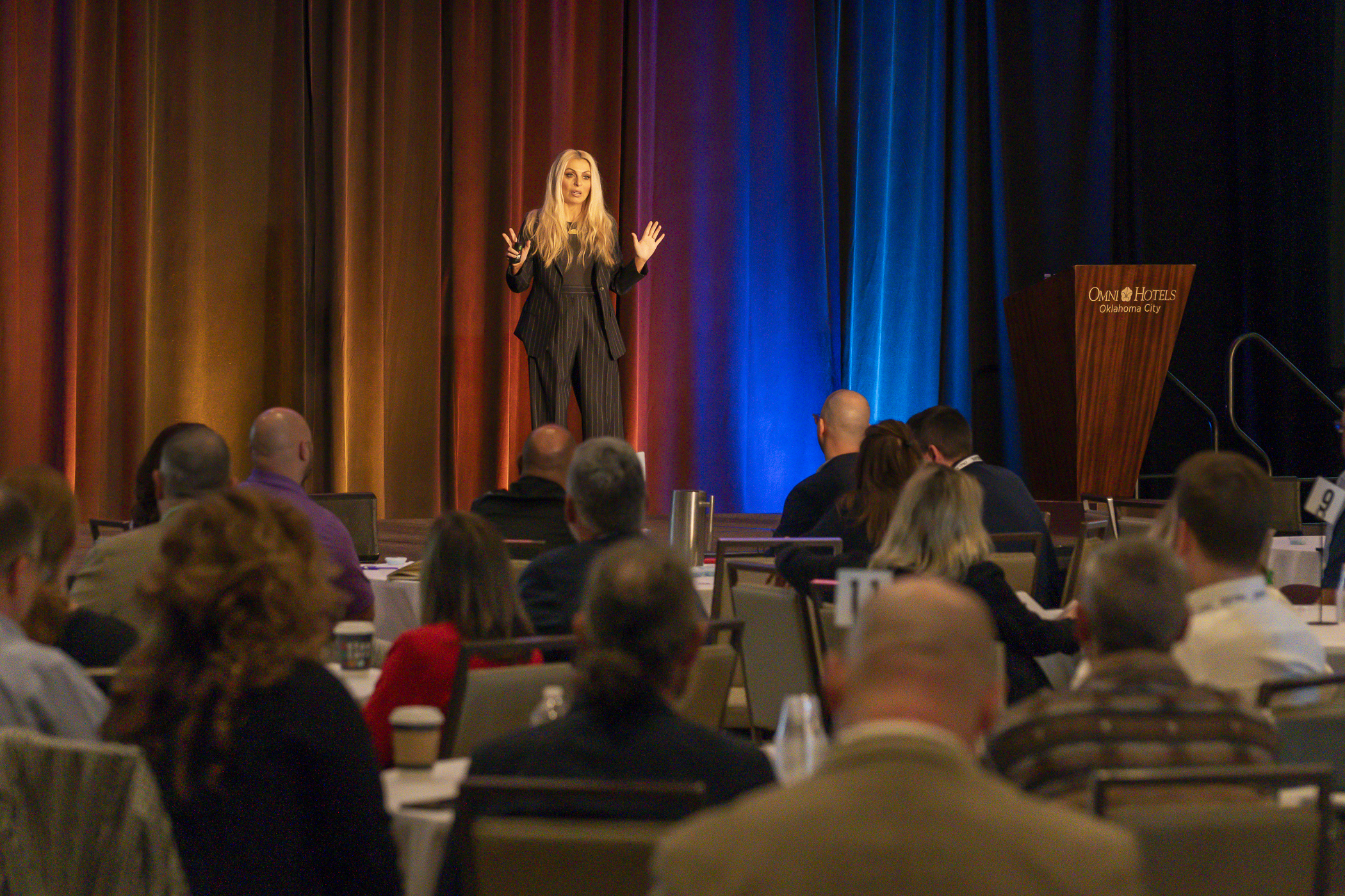 Evy Poumpouras, a former Secret Service Special Agent and interrogator, shared her insights on leadership during the FNF Family of Companies-sponsored Idea Festival at the 2024 ALTA SPRINGBOARD in Oklahoma City, Okla. She noted that leadership is about building genuine connections with others.
