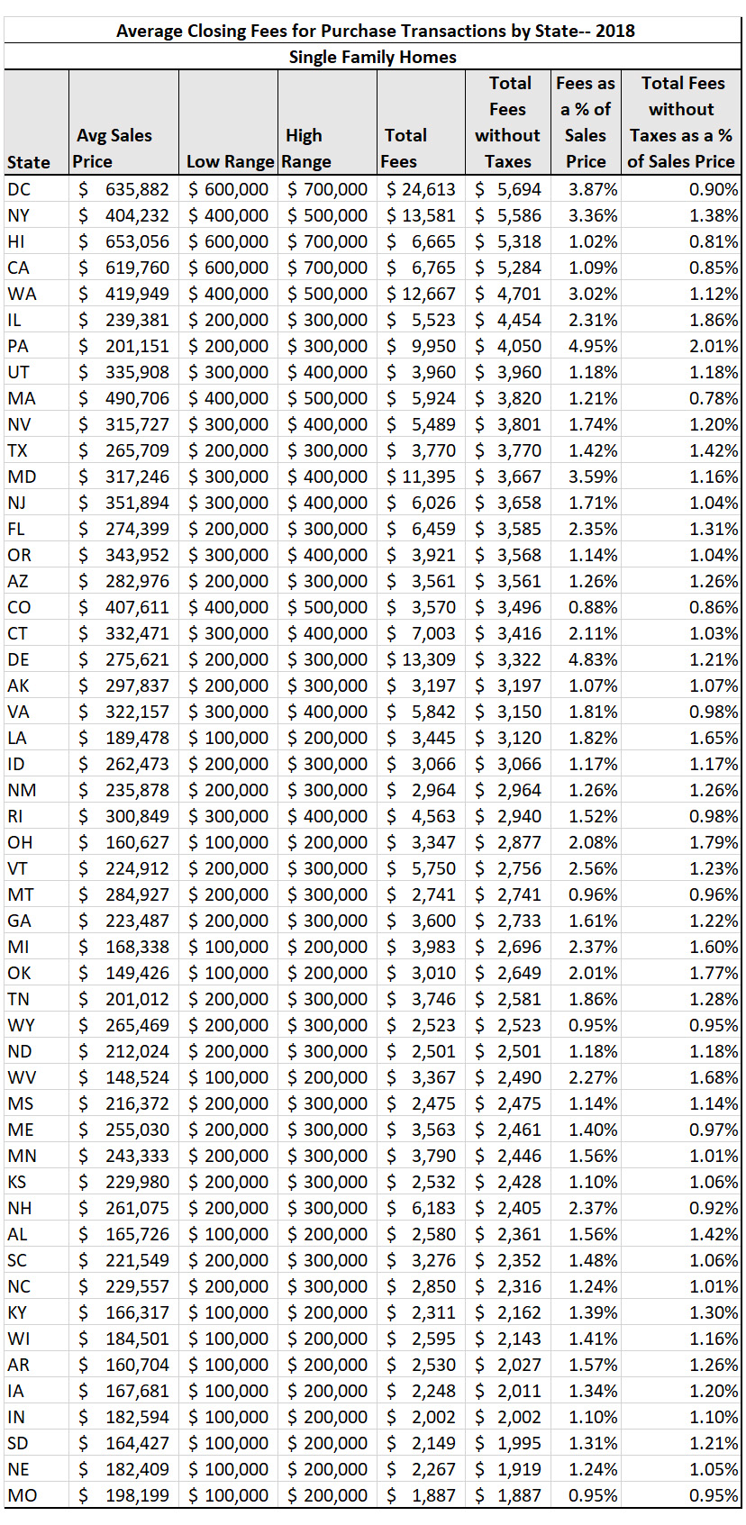 The 2018 report shows the jurisdictions with the highest average closing costs, including taxes, were: