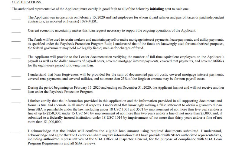 It’s important to remember that you are filling out a federal form that subjects you to potential criminal liability. Make sure you are answering honestly. The loan application requires the borrower to initial certain certifications.