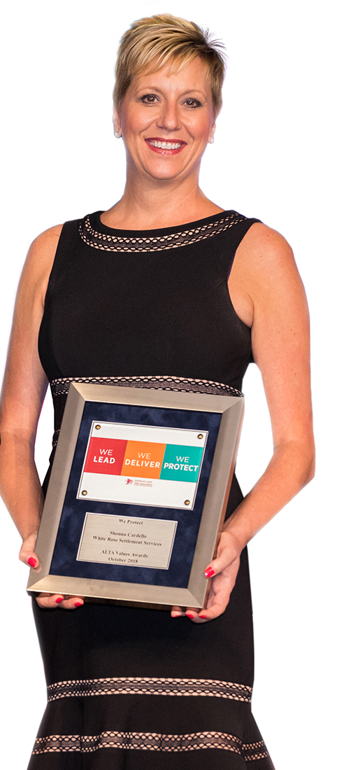 Cardello was one of three ALTA members honored at the 2018 ALTA ONE conference with an inaugural ALTA Our Values Award. The awards program showcases the title insurance industry’s Our Values initiative, which serves as the industry’s cultural compass and highlights the core ideals ALTA members embrace.
