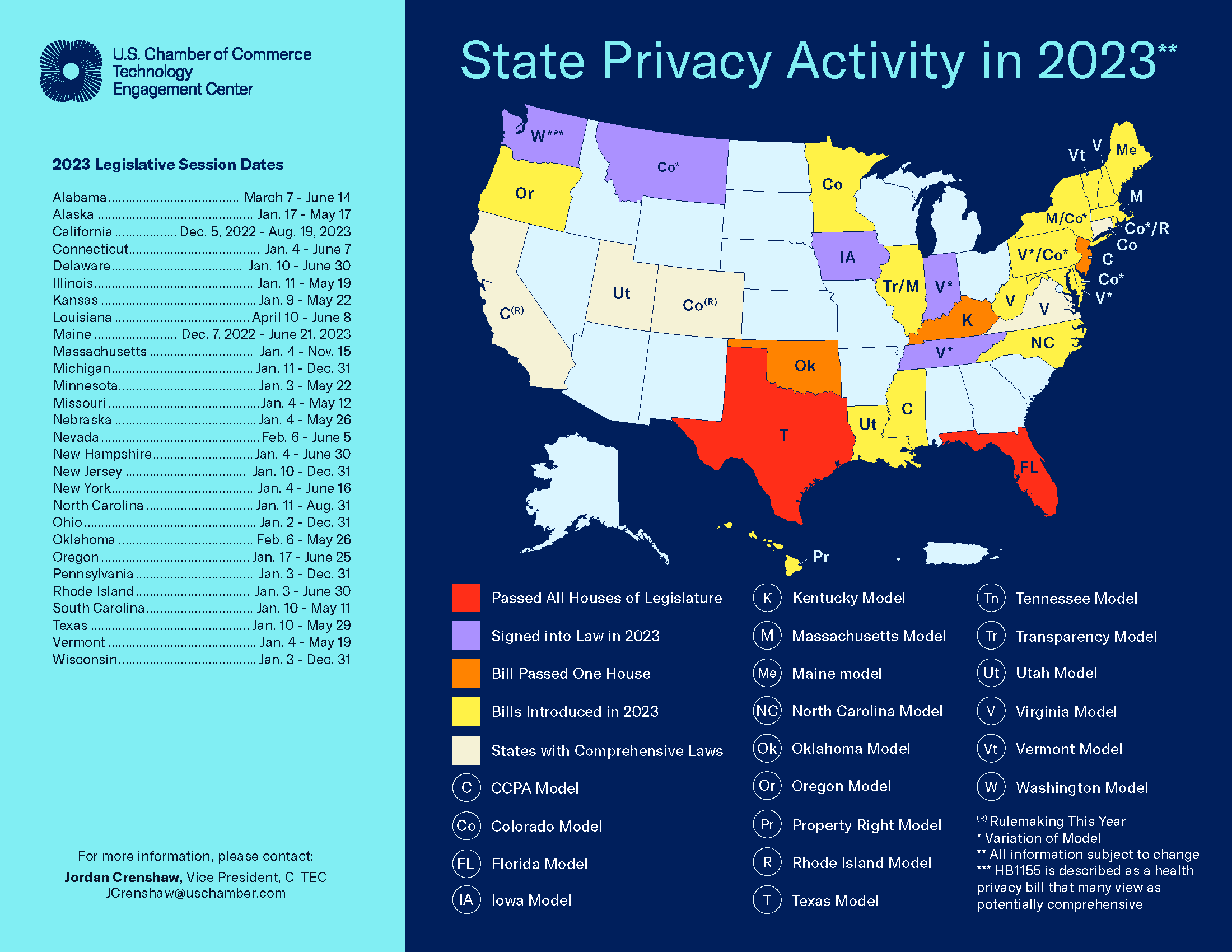 Additionally, there are exemptions for publicly available data. Each state’s bills can be accessed below: