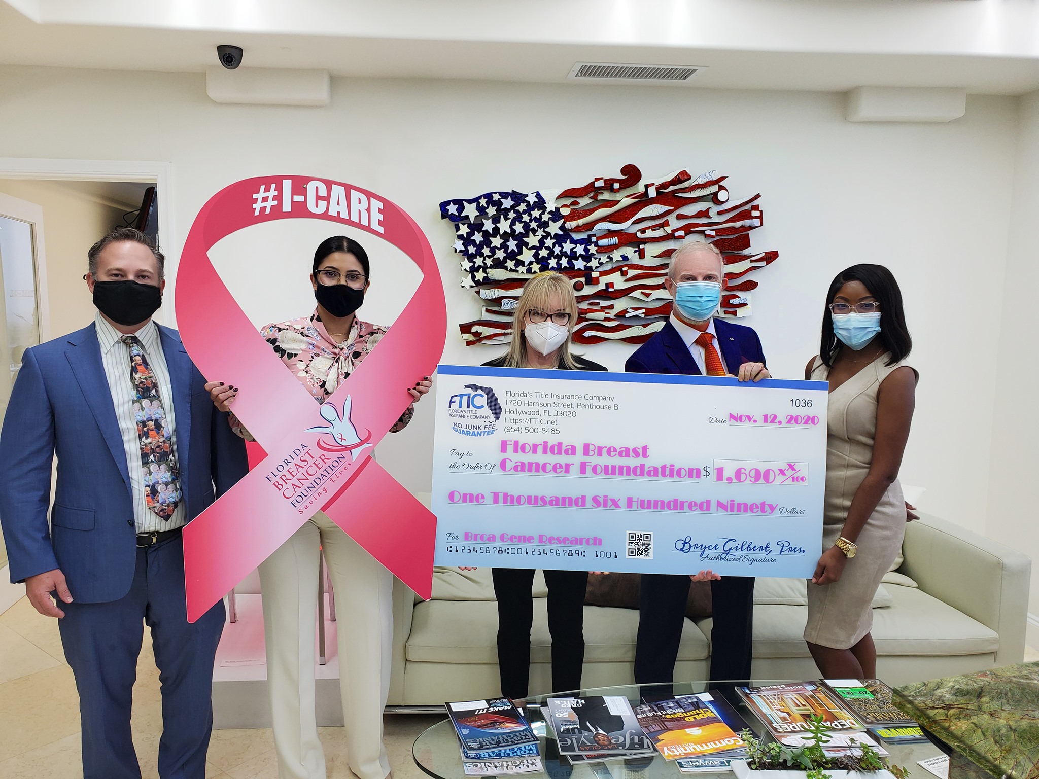 During November, Florida’s Title Insurance Company is donating $162 for every new file received to JFS’ Cupboard to help feed three families. In October, FTIC donated $130 of each order to the Florida Breast Cancer Foundation to aid breast cancer research. The campaign raised $1,690.