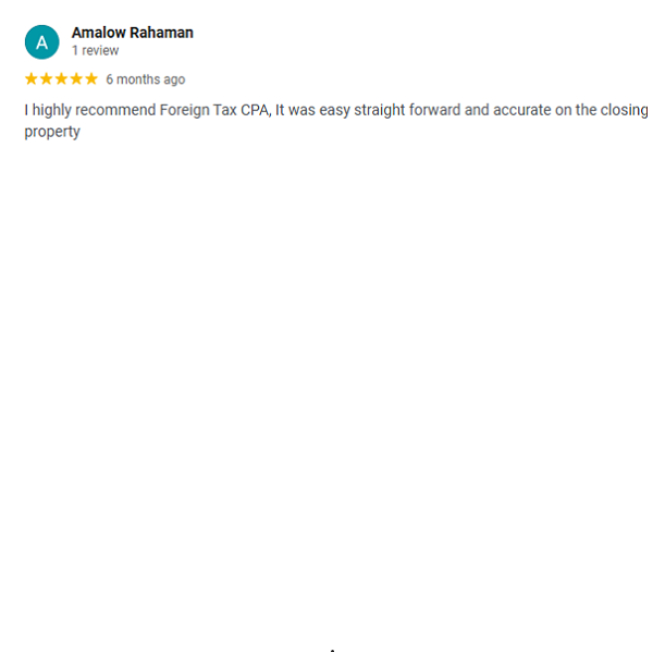 Foreign Tax CPA, LLC is a U.S.based CPA firm that works closely with title companies, escrow agents, and closing professionals to ensure full compliance with FIRPTA withholding and reporting requirements in transactions involving foreign sellers of U.S. real property.