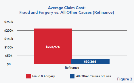 - The average cost of fraud and forgery claims is nearly seven times higher than all other refinance claim types.